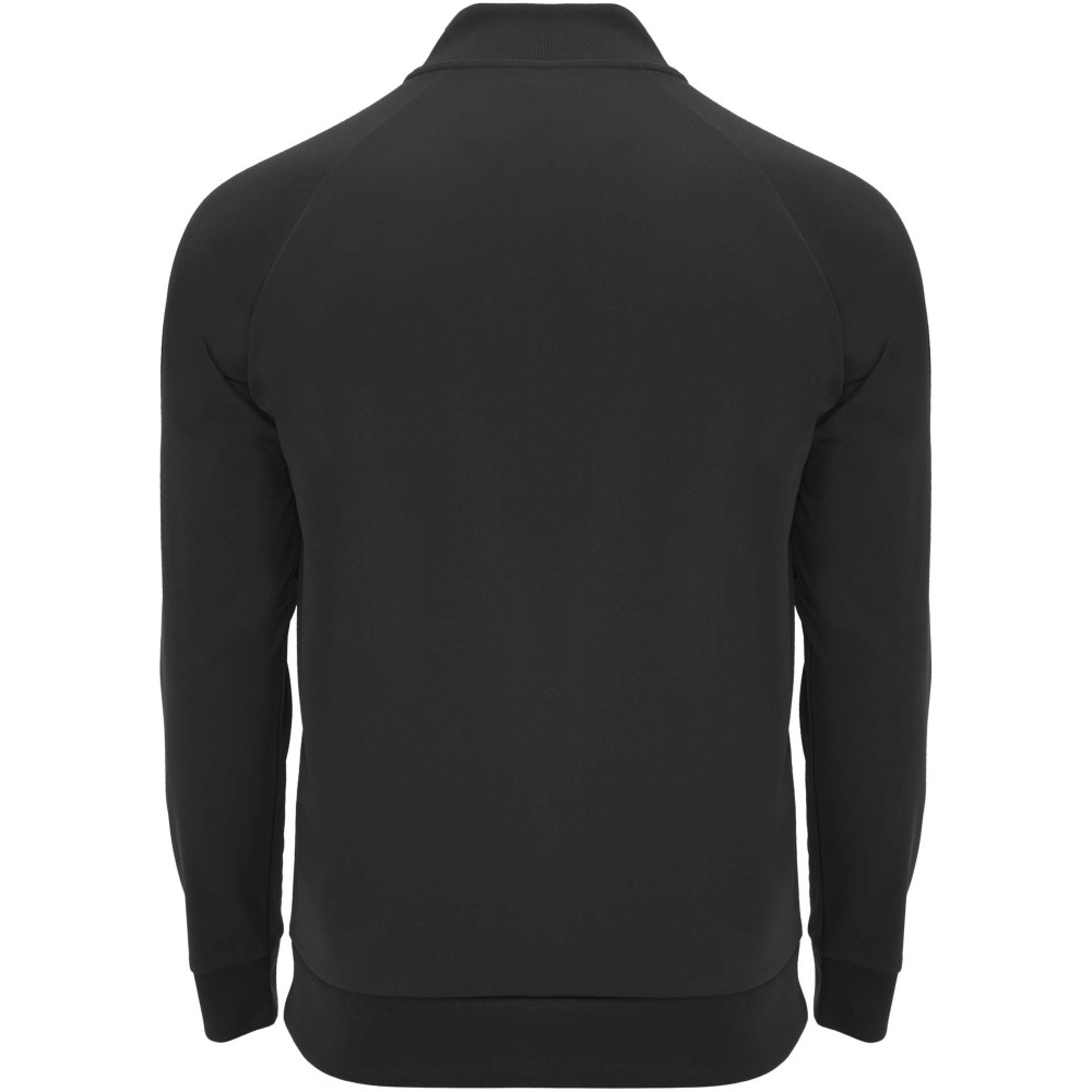 Technikai anyag. Raglán ujjak. Belül bolyhos anyag. Negyedcipzár azonos színű megerősített, fedett öltésekkel. Bordázott nyak-, ujj- és aljpasszé. Eltávolítható címke.