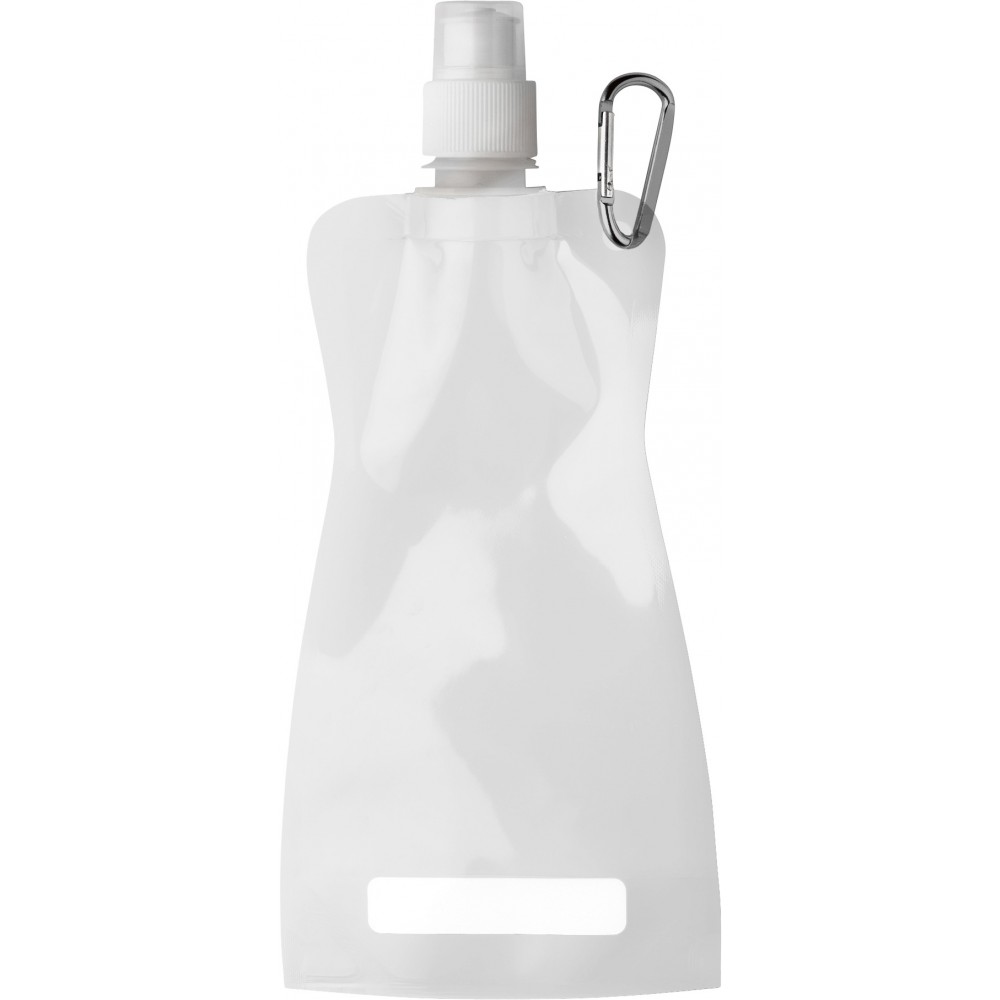 Összehajtható vizeskulacs karabinerrel. Nem szivárgásmentes. Mosogatógépben nem tisztítható. 420ml. BPA-mentes műanyag.